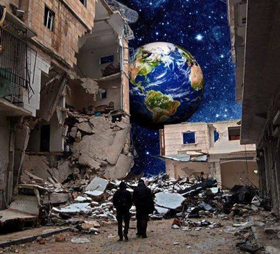 (Deel van) een foto die de Planet Syria to Planet Earth campaign introduceert