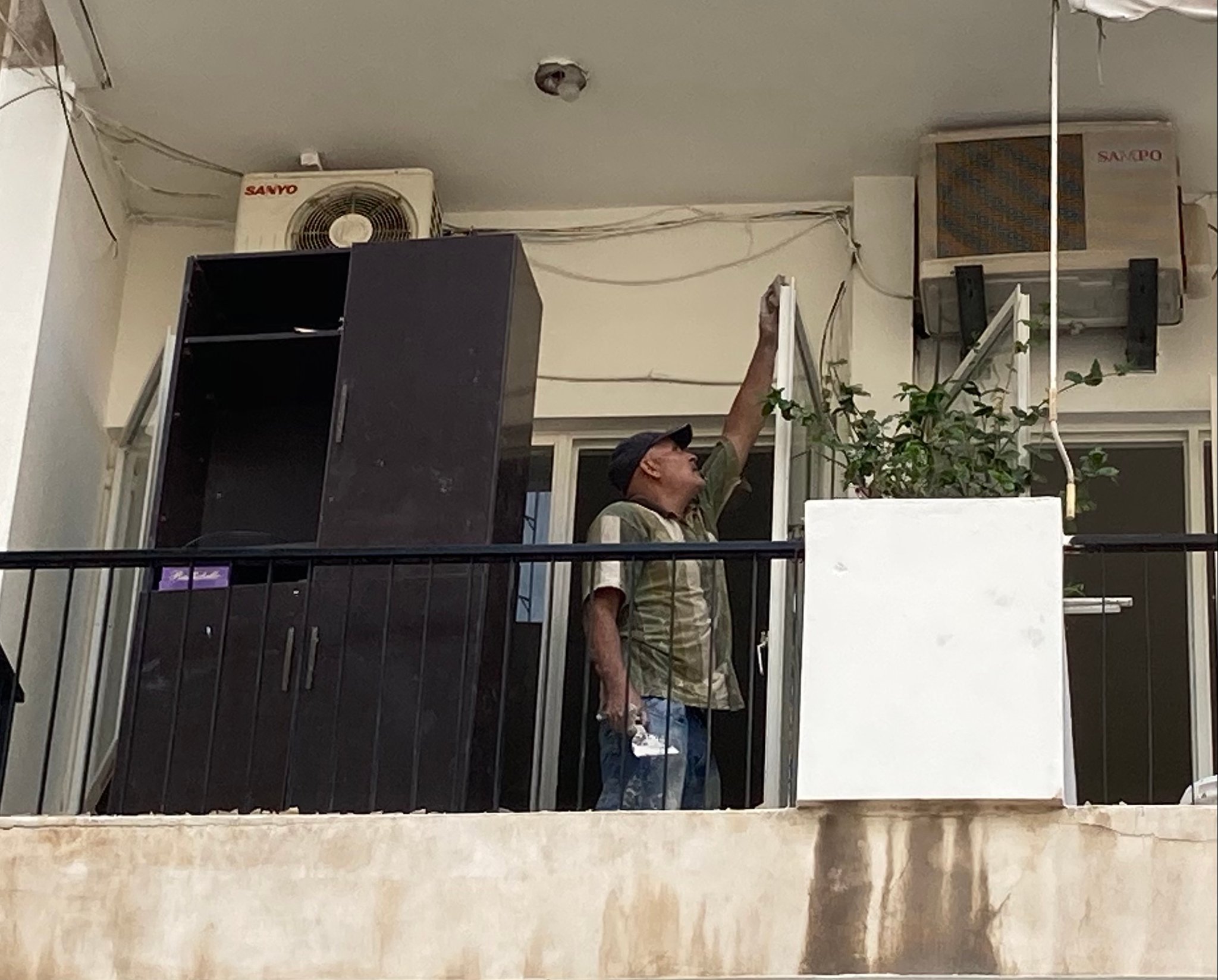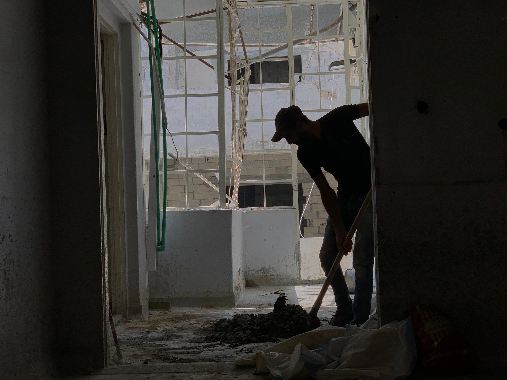 foto's van de reparaties die Alpha uitvoert, samen met bewoners, in Bourj Hammoud, een arme wijk vlakbij de haven.