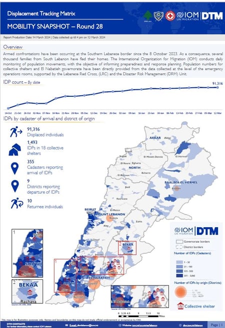 Volgens de IOM (de Internationale Organisatie voor Migratie) hebben nu (14 maart 2024) al meer dan 91.000 personen het zuiden van Libanon verlaten vanwege de gevechten in zuid